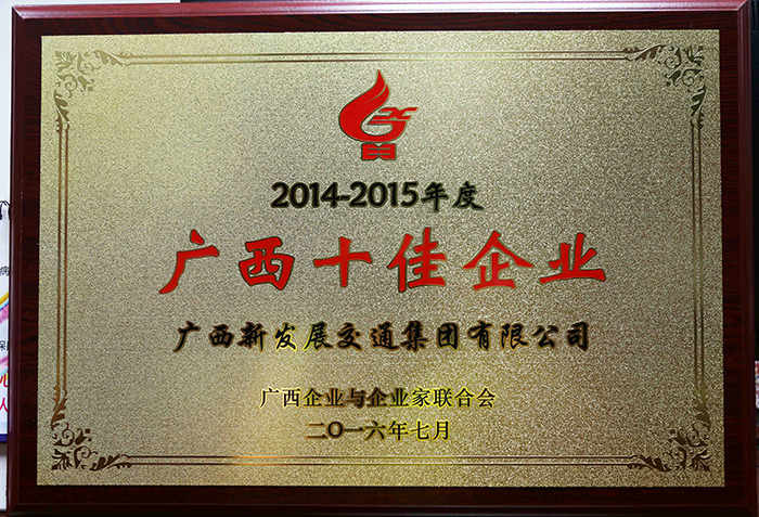 集團公司獲得“2014-2015年度廣西十佳企業”榮譽,集團公司董事長、黨委書記朱堅和榮獲“2014-2015年度廣西優秀企業家”稱號!