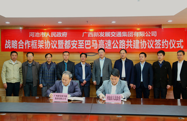 12月16日上午,集團公司與河池市人民政府舉行戰略合作框架協議暨都安至巴馬高速公路共建協議簽約儀式。