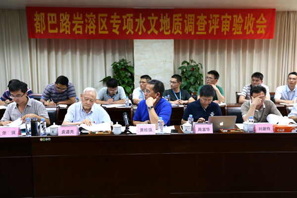 袁道先院士(左二)參加都巴路初步設(shè)計巖溶區(qū)專項水文地質(zhì)調(diào)查評審驗收研討