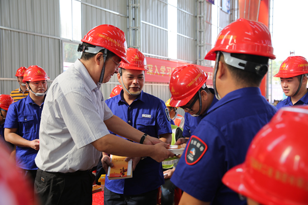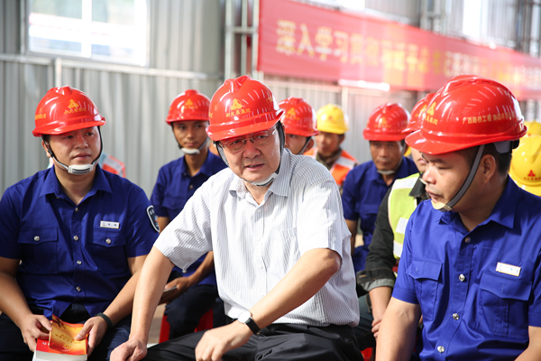 在作業一線,王躍飛主席結合企業實際情況,與現場員工及作業工人深入淺出的講解黨的十九大精神,讓黨的十九大精神在基層落地生根。王躍飛指出,黨的十九大對中華民族乃至每個老百姓的命運十分重要、關鍵,會議選舉出了以習近平總書記為核心的領導集體,確定了習近平新時代中國特色社會主義思想,確定了新的發展規劃。王躍飛表示,當前我國的奮斗目標是建設成為富強、民主、文明、和諧、美麗的社會主義現代化強國,我國的社會主要矛盾也已經轉化為人民日益增長的美好生活需要和不平衡不充分的發展之間的矛盾,我們要對這些新論斷,新理念有清醒的認識。在宣講過程中,王躍飛用通俗易懂的語言對黨的十九大主要內容進行了精彩的講解。