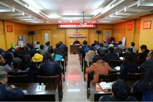 為使黨的十九大精神深入基層、深入人心,11月27日,集團公司紀委書記翁科到桂通公司宣講黨的十九大精神。桂通公司總部全體人員、分公司、南寧周邊項目員工參加學習。