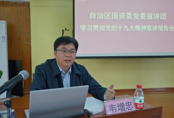 圖為韋增忠主席在集團公司都巴高速項目宣講黨的十九大精神