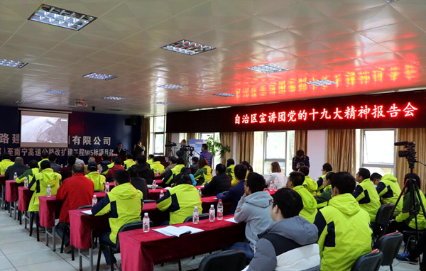 12月12日,自治區宣講團成員黃健教授來到廣西新發展交通集團柳州至南寧高速公路改擴建5標項目部作黨的十九大精神專題宣講。