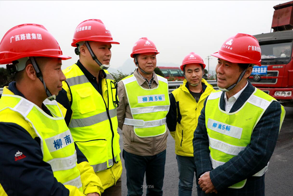 宣講會結束后,黃健教授深入柳州至南寧高速公路改擴建5標項目施工一線調研,與現場施工人員進行親切交流,并就職工提出的問題一一進行耐心解答。(廣西路建集團 供稿)