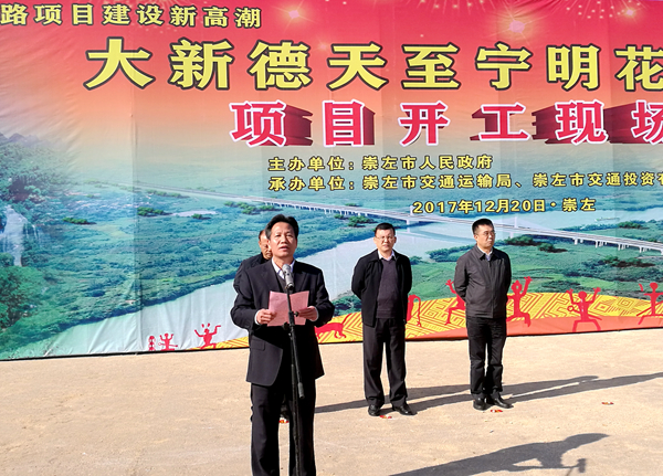 12月20日,崇左市大新德天至寧明花山公路舉行開工儀式,集團(tuán)公司黨委書記、董事長(zhǎng)朱堅(jiān)和,集團(tuán)公司黨委副書記、副董事長(zhǎng)、總經(jīng)理唐咸秋,路橋工程集團(tuán)及設(shè)計(jì)院有限公司相關(guān)負(fù)責(zé)人參加了開工儀式。