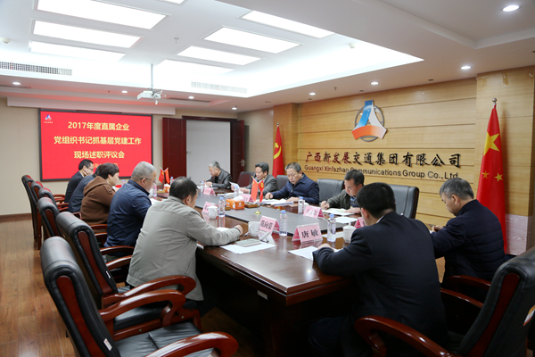 1月12日,集體公司召開2017年度直屬企業(yè)黨組織書記抓基層黨建工作現(xiàn)場述職評議會。集團(tuán)公司黨委書記朱堅(jiān)和,黨委副書記張友坐、翁科,紀(jì)委書記韋慶和以及自治區(qū)國有企業(yè)監(jiān)事會代表出席會議。