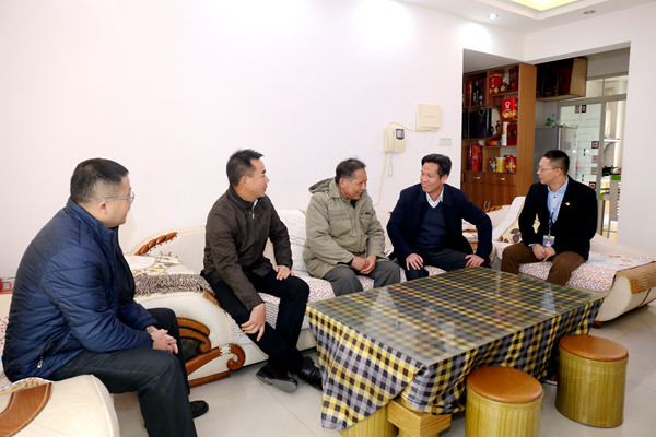 2月7日,集團公司黨委書記、董事長朱堅和,紀委書記韋慶和到交通設計院有限公司職工小區看望慰問退休困難職工黃仁高。在黃仁高同志家中,朱堅和關心詢問他的病情,了解他的診療情況,與他分享公司近年來在生產經營、科研創新方面取得的重大成績,并對以他為代表的設計院老一輩員工為設計院發展所做的貢獻表示感謝,代表集團公司黨委向他及他的家人致以問候和祝福。