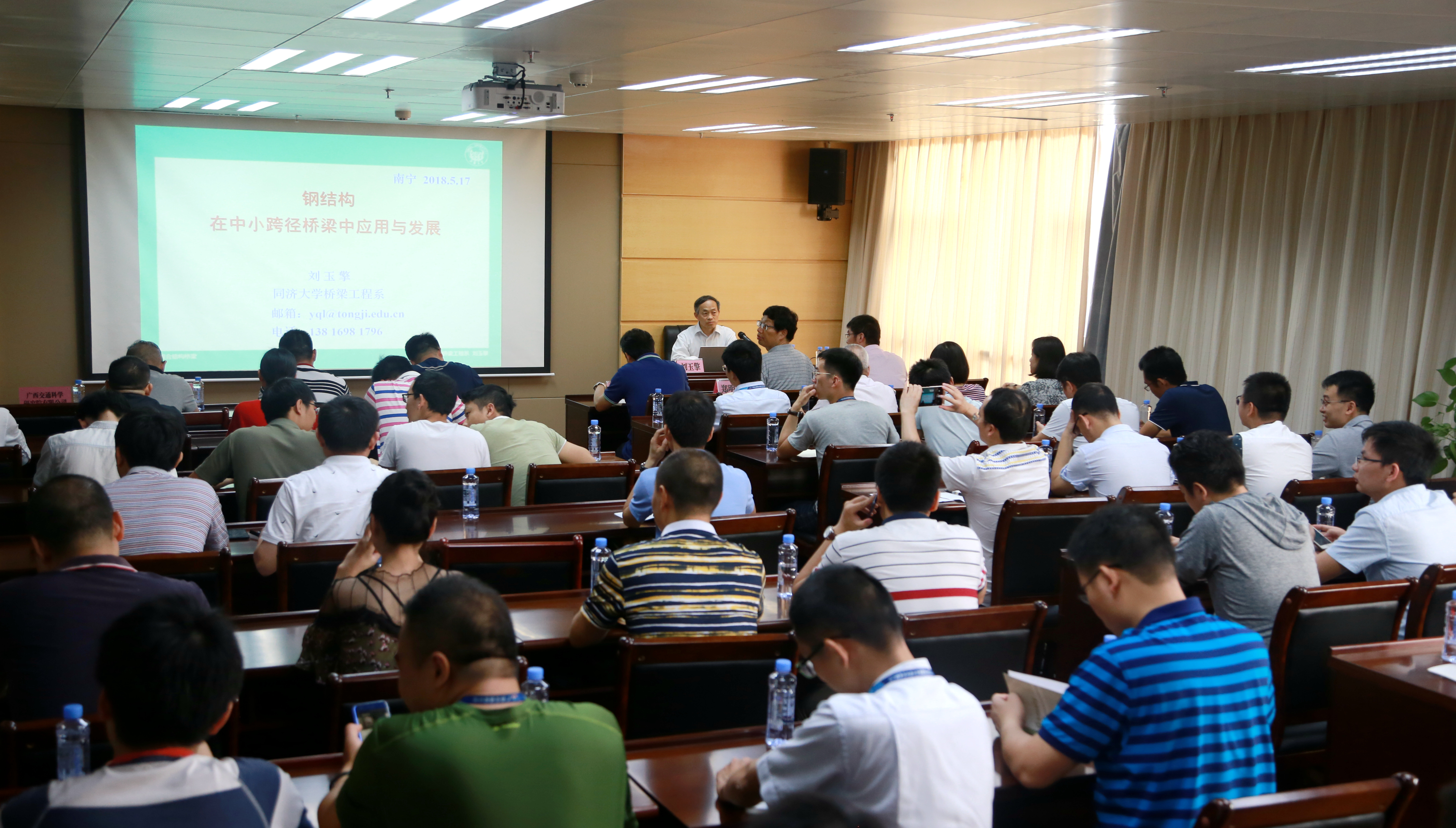 5月17日上午,集團公司博士后科研工作站邀請合作流動站同濟大學橋梁工程系教授、博士生導師劉玉擎到集團公司授課,講解鋼結構在中小跨徑橋梁中的應用及發展歷程。集團公司總工程師覃炳賢、首席專家鄭明德及直屬企業技術骨干共72人參加了講座。