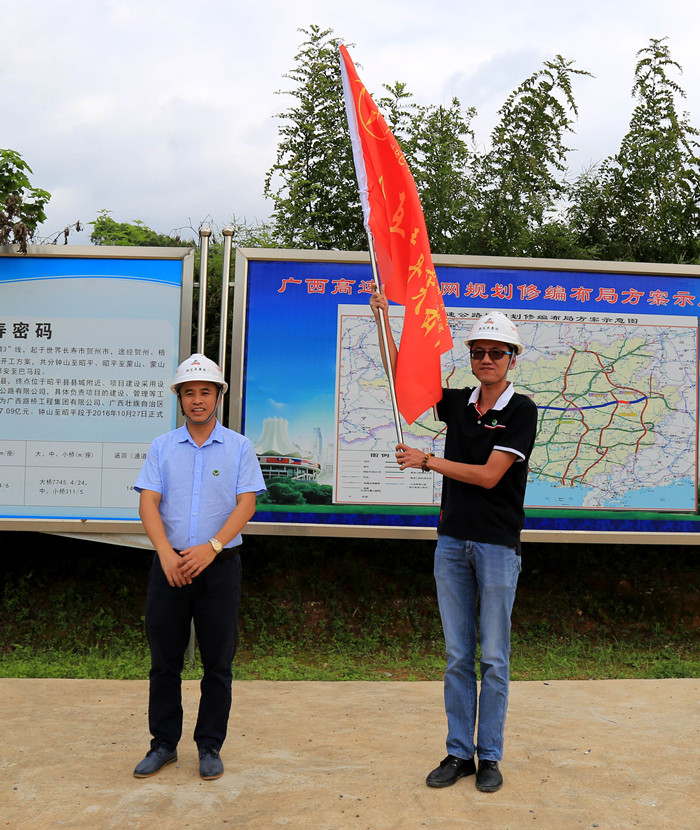 活動當天,指揮部副指揮長王萬展、呂化冰帶隊,先后到同古互通、桂江大橋、桃溪1#2#大橋、福行大橋等項目控制性工程舉行授旗儀式,要求青年突擊隊隊員要積極投身項目建設中,提高生產效率,充分發揮青年突擊隊吃苦耐勞、勇于拼搏、不斷進取、攻堅克難的優良作風,全力沖刺生產任務。青年突擊隊隊長作表態發言:充分發揮主力軍作用,投身急、難、險、重、新工作當中去,重點突破,圓滿完成各項施工任務。