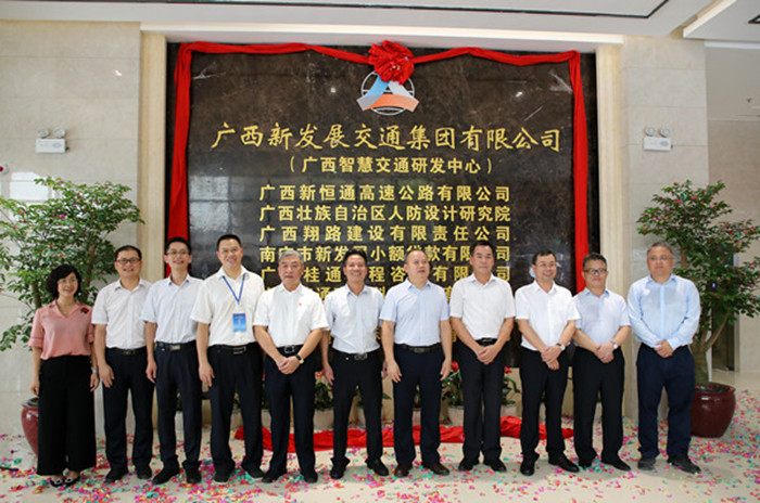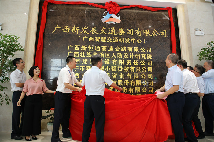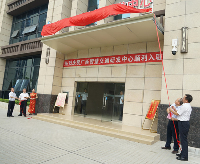 在喜慶熱烈的氣氛中,集團(tuán)公司領(lǐng)導(dǎo)朱堅(jiān)和、唐咸秋、翁科、韋慶和共同為廣西智慧交通研發(fā)中心暨入駐單位揭牌。儀式結(jié)束后,領(lǐng)導(dǎo)合影留念,并參觀了新辦公樓。