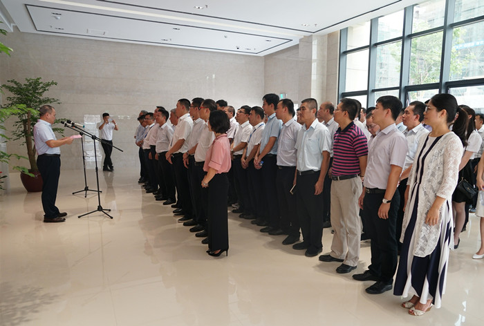 各入駐單位代表分別表態(tài)發(fā)言。新恒通公司黨委書(shū)記、董事長(zhǎng)賴(lài)水平表示,入駐智慧交通研發(fā)中心對(duì)新恒通公司來(lái)說(shuō)是一件大事,足以寫(xiě)入公司發(fā)展史冊(cè)。賴(lài)水平對(duì)集團(tuán)公司黨委、領(lǐng)導(dǎo)班子的關(guān)心與厚愛(ài)及各兄弟單位的支持和幫助表示感謝,他表示今后新恒通公司將緊密團(tuán)結(jié)在集團(tuán)公司黨委周?chē)詮?qiáng)有力的執(zhí)行力堅(jiān)決貫徹集團(tuán)公司的部署,為集團(tuán)公司打造“百年企業(yè)”、實(shí)現(xiàn)“新發(fā)展夢(mèng)”做出更大的新的貢獻(xiàn)。同時(shí),他表示公司作為辦公樓業(yè)委會(huì)牽頭單位,定會(huì)全力服務(wù)好各兄弟單位。
