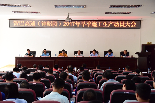 8月18日,賀州至巴馬高速公路(鐘山至昭平段)(以下簡稱鐘昭高速)2017年旱季施工生產動員大會在昭平召開。集團公司有關領導,公司黨總支書記、董事長、總經理賴水平,新恒通公司常務副總經理蘇偉勝等領導出席會議,各參建單位共180人參加會議。