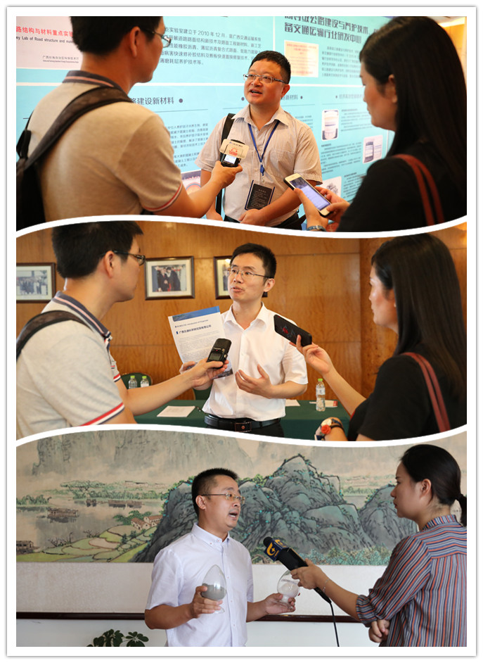 圖為廣西交科院熊劍平博士(上)、張洪剛博士(中)、周勝波博士(下)接受媒體采訪介紹會議情況和公司最新產品研發成果