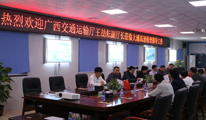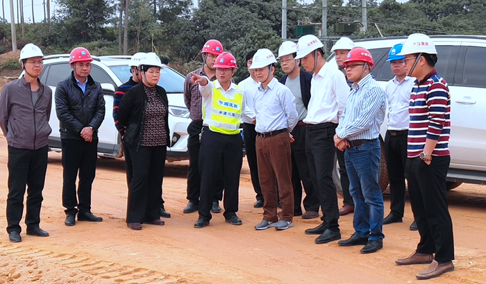 12月23日下午,區(qū)交通運輸廳副廳長王劼耘一行到大塘至浦北高速公路項目開展項目建設(shè)檢查指導。自治區(qū)交通運輸廳建設(shè)管理處副處長余建國、北投集團總工程師覃炳賢、欽州市交通局局長鄒滿麗、靈山縣副縣長陸漢川、新發(fā)展集團總經(jīng)理藍日彥、大浦公司副總經(jīng)理姚雷、中建八局南方公司總經(jīng)理助理龍永強等陪同。