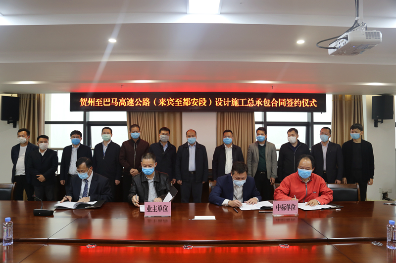 3月16日下午,賀州至巴馬高速公路(來賓至都安段)設計施工總承包合同簽約儀式在新發展大廈舉行。集團公司黨委書記、董事長陳開群,黨委副書記、總經理藍日彥,副總經理蘇偉勝,以及來都路3個設計施工總承包合同段的中標單位領導和代表參加簽約儀式。