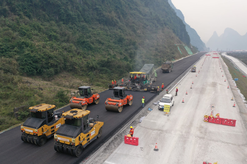 自2月10日起,賀州至巴馬高速公路、大塘至浦北高速公路、吳圩至隆安高速公路、融水至河池高速公路等多個自治區重大項目相繼恢復施工生產,做到了讓施工現場“活”起來、設備“動”起來、氣氛“熱”起來,形成了大干快上的良好局面。